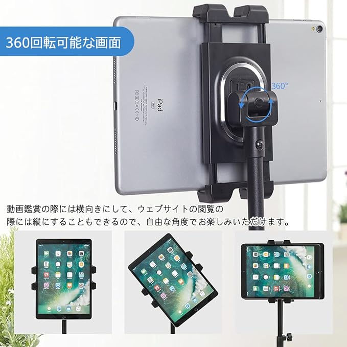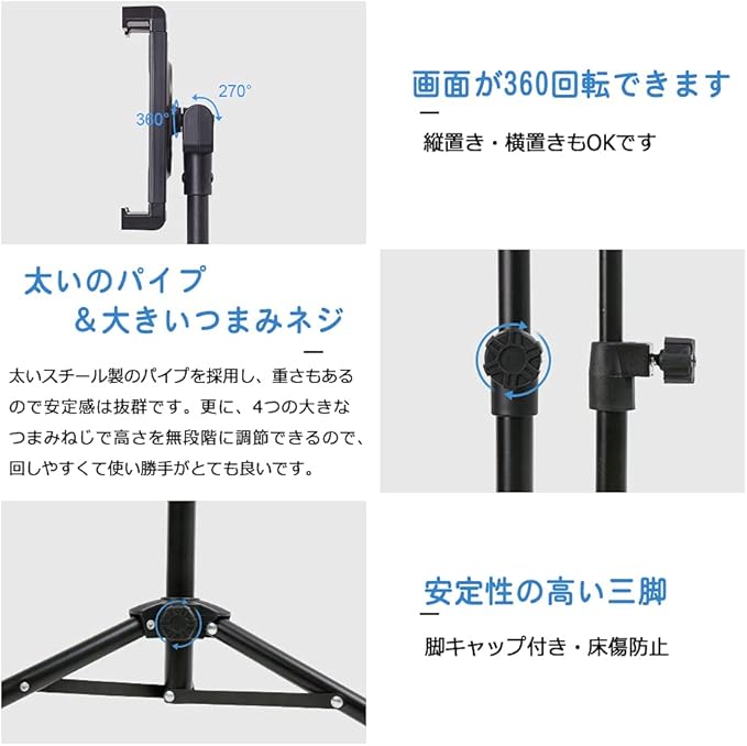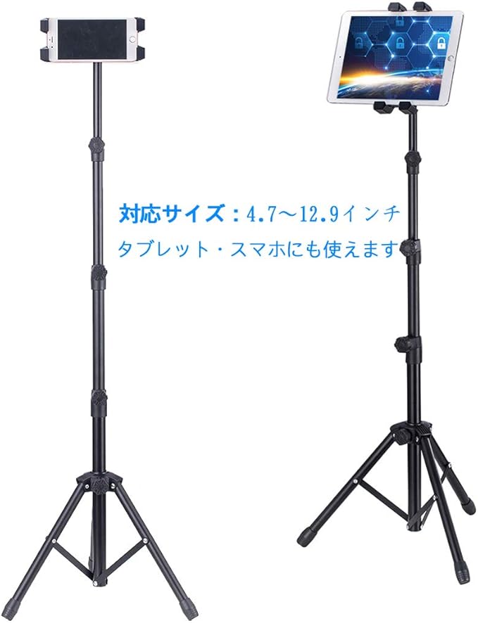 UNHO スマホスタンド 三脚 ipad mini スタンド 撮影 タブレットスタンド 携帯スタンド 床置き 持ち運び 軽量 高さ調整 折り畳み 12.9インチ 360度回転 モバイルモニター スタンド 縦置き