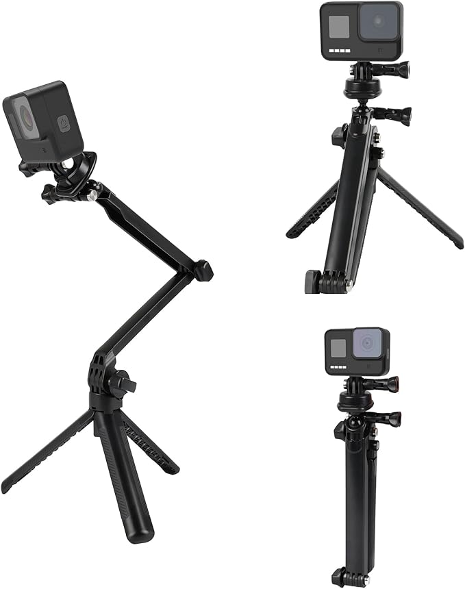 エツミ 三脚 アクションポッド 3WAY 3 カメラ アクションカメラ 自撮り グリップ 360 ローアングル 撮影 折りたたみ 収納 セルフィー 1/4インチネジアダプター 付属 ブラック VE-2542