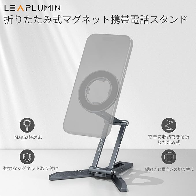 磁気式iPad三脚スタンド – iPad Pro/Air/MiniおよびiPhone 15~12シリーズに対応 | 360 回転可能なポータブルタブレットホルダー、デスクトップ&ハンドヘルドの2-in-1モード | 軽量105g