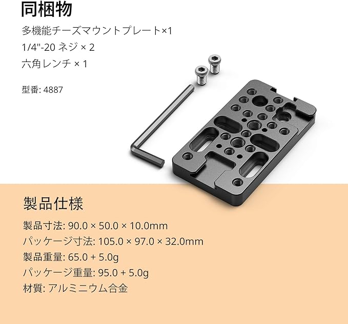 【パッケージ内容 】 多機能チーズマウントプレート x 1、1/4"-20 ネジ x 2、六角レンチ x 1
