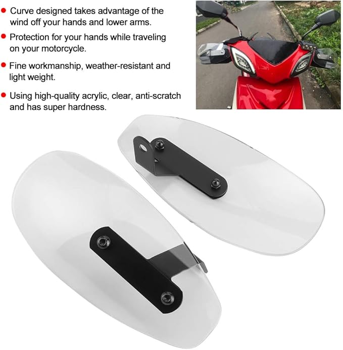 オートバイハンドガード 5mmアクリル+合金鋼 ハンドルバーウィンドシールド 防風 防寒 透明外観 メンテナンス便利(透明) 仕上がり 耐候性 軽量 透明 傷防止 軽量 手の保護