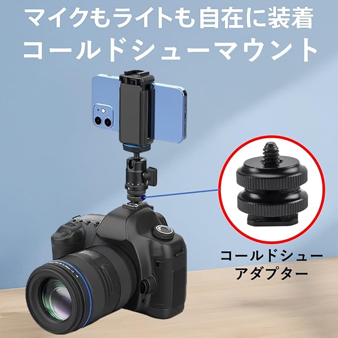 コールドシューマウントを付属しており、マイク・LEDライトなどのアクセサリーを簡単に装着することが可能です。動画撮影、配信、映像制作、Vlog撮影、ライブ配信など幅広い用途にお使いいただくことができます。シンプルで滑らかな回転ノブにより、角度調整が素早く行えます。直感的な操作でセッティング時間を短縮し、撮影のテンポを損なわず、構図変更も直感的に行えますので、決定的な瞬間を逃さないよう撮影に集中することができます。