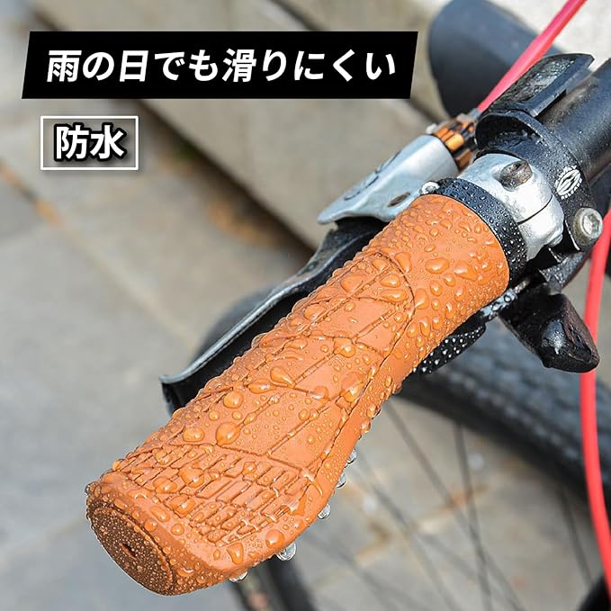 【雨の日のライディング】雨の日でもしっかりとグリップを握りたい方に。このグリップは滑り止め効果のあるデザインと素材なので、雨の日でもサイクリングを楽しむことができます。また、汗をかいても滑りにくい。