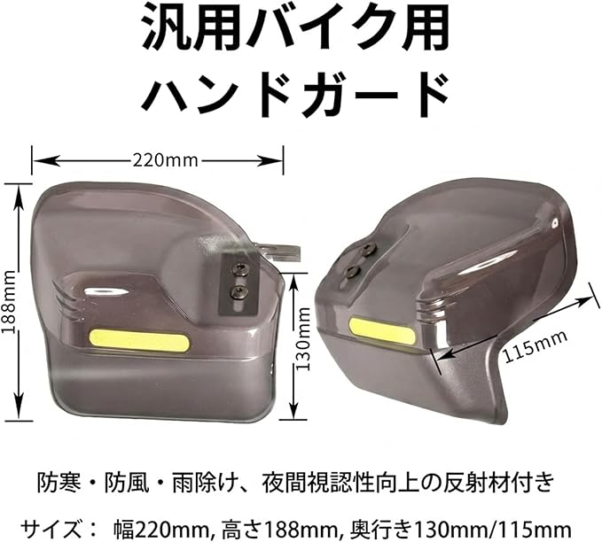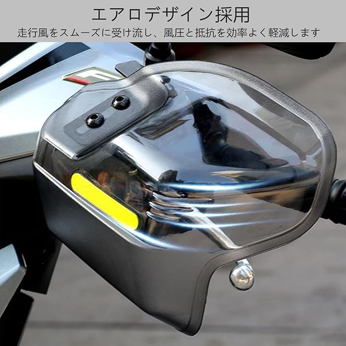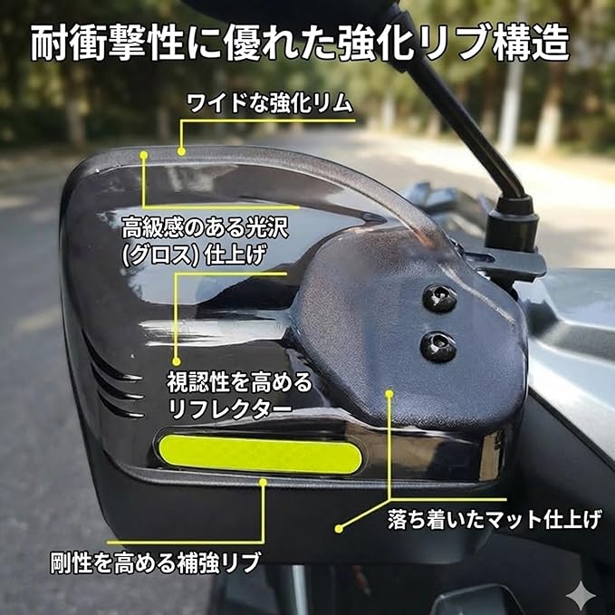 防風・防寒性能:広いガード面が冷たい走行風を大幅に軽減し、冬場の手元の冷えを防いで操作性を維持。寒冷地や通勤ライダーにも最適で、季節を問わず快適なライディングを実現します