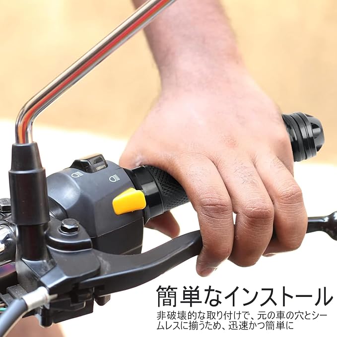 【見た目もスタイリッシュ】シンプルかつモダンな半透明黒色のデザインで、どんなバイクにも自然に馴染みます。スタイリッシュな外見で、愛車のドレスアップにも最適です。走行中の視認性も確保しつつ、装着することで愛車の印象を一新しましょう,ロッドエンドキャップ付きゴムハンドル、外観が斬新で優雅で、オートバイの外観を向上させ、装飾に非常に適している