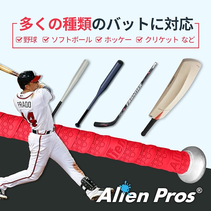 ユニバーサルな互換性があり、あなたの野球バットのグリップを強化してくれます。それだけではなく、クリケット、ソフトボール、ラクロスのグリップにも使用可能です。