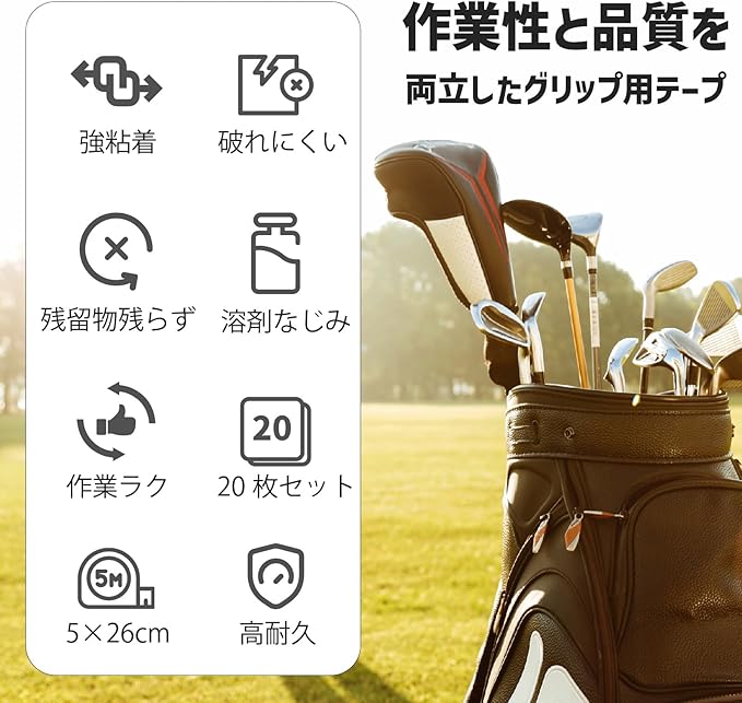 ゴルフクラブ グリップ交換キット ゴムシャフトクランプ グリップテープストリップ フックブレード 固定具 簡単にグリップ交換出来るオールインワンキットです。ゴルフクラブを傷つけずスムーズに修理できます。 ドライバー、アイアン、ウェッジ、パターに関係なくどのクラブにも利用可能です。 使用後も簡単に剥がすことができるところもポイントです。 取付け、取り外しが短時間で完了します。大切なクラブを使いやすくリメイクでき、耐久性のあるゴム製のクランプがシャフトをしっかり固定、損傷を防ぎます。 【セット内容】 ・3点セット ゴム製万力クランプ 1点 ゴルフテープストリップ 13枚 ゴルフナイフ 1点 ・4点セット ゴム製万力クランプ 1点 ゴルフテープストリップ 13枚 ゴルフナイフ 1点 クランプ固定具 1点 ・交換用テープのみ ゴルフテープストリップ 20枚(約5 26cm) 【サイズ(約)】 クランプ:約8.5cm 3cm 2.5cm ストリップ:約27cm 5cm ナイフ:約13cm 2cm