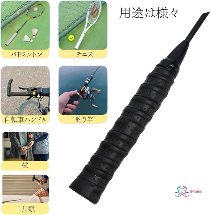 【多用途】テニス、バドミントン、卓球、野球、ソフトボールに適しています。自転車のハンドル、釣り竿、バイクのハンドル、工具や杖、手すりなど生活面での用途にも適用