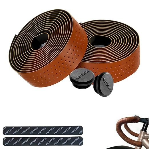 バーテープ ロードバイク用 ザー調 PU+EVA製 自転車用グリップ バーテープ 穴あき 滑り止め 左右セット ブラウン