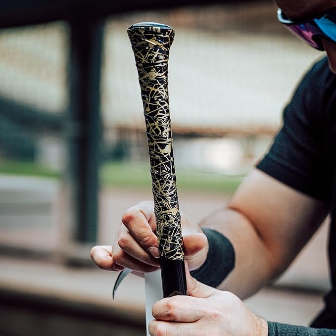 Supacaz (スパカズ) スーパー スティッキー クッシュ ゴールド スプラット ベースボール バットテープ - ソフトボール バットラップ - ハイパフォーマンス プロ ビッグリーグ バットグリップ - 0.5mm