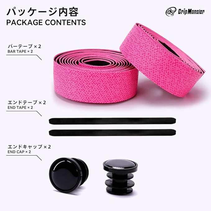 GirpMonster 自転車ハンドルバーテープ ロードバイクバーテープ ドロップハンドルテープ 特製PU素材 滑り止め 衝撃吸収 軽量柔軟 取り付け簡単 エンドテープとエンドキャップ付属 2本セット