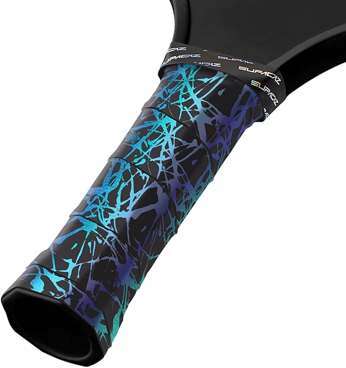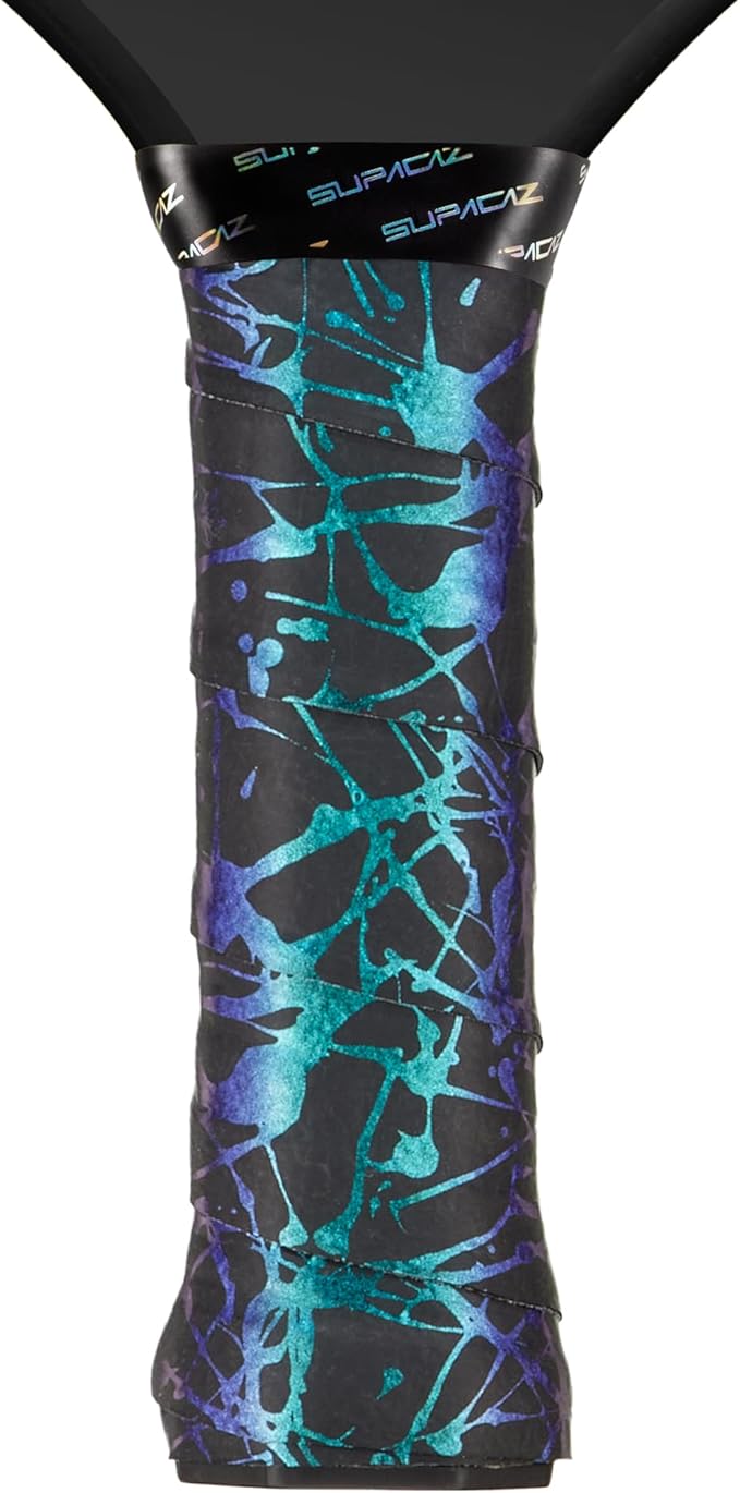 Supacaz (スパカズ) スーパー スティッキー クッシュ ブルー リフラクター スプラット ピクルボールオーバーグリップ - タッキー ピクルボールパドル グリップテープ ラップ - ピクルボール アンチスウェット オーバーラップ - 3パック