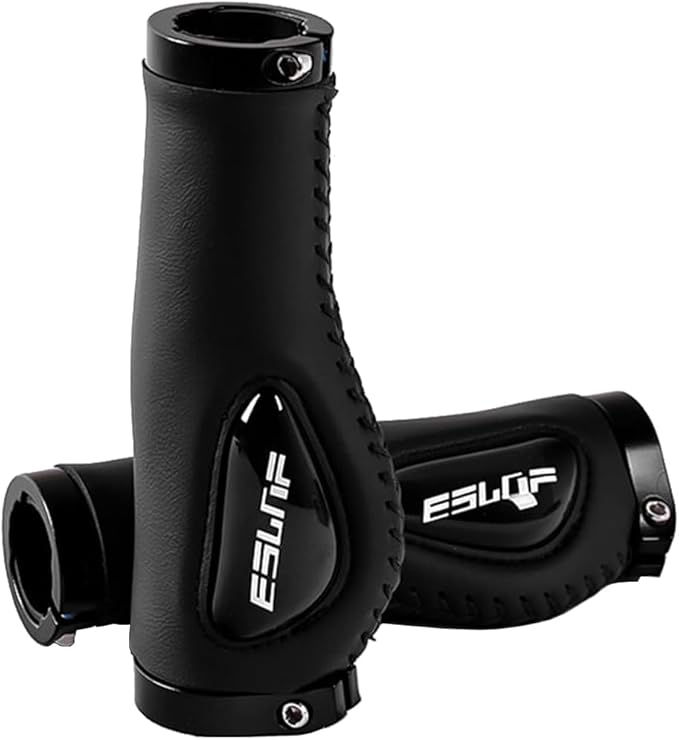 自転車 グリップ ハンドルグリップ レザー シリコンクッションパッド付き ダブルロックオン固定 人間工学 衝撃吸収 疲れにくい 滑り止め 耐久性 汎用 エルゴグリップ φ22.2mm用 BT-002BK