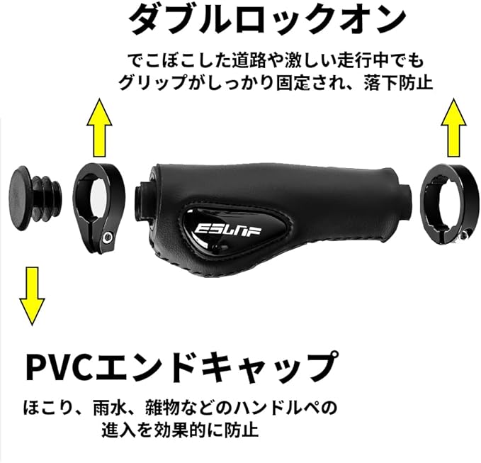 【高品質素材】高品質なPU革を採用して、柔らかくでサラリとした質感、優しい手触りが大変心地良く使いやすい自転車グリップです。滑り止めと同時に安定性を高めます。PVCエンドキャップ付きで、ほこり、雨水、雜物などのハンドルペの進入を効果的に防止する。安心してサイクリングできます。