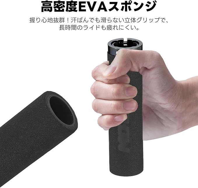 【衝撃吸収】厚い高密度EVAスポンジ製なので衝撃を吸収して、良好な弾性で手に握てとても柔軟で快適で、手のひらにフィットする柔らかな包み込み感で、長時間のライドでも手の疲れを軽減。発汗時でも滑りにくい立体グリップを実現。