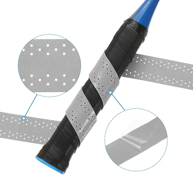 PATIKIL 43.3" テニスラケットグリップテープ 9パック PUオーバーグリップ パンチング加工 吸水性 ノンスリップ バドミン トン 釣り竿 用 グレー