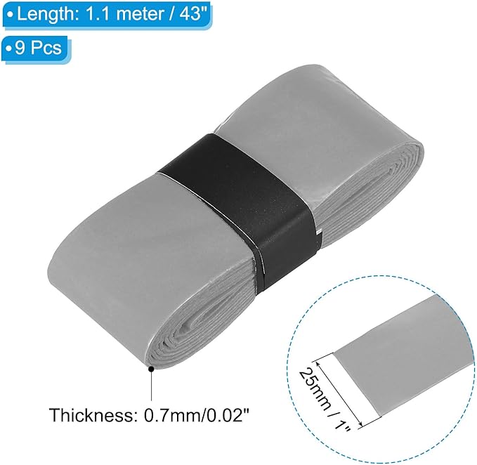 カラー:グレー;素材:PU;サイズ:1.1メートル x 25mm / 43 x 1" (縦*横);パッキングリスト:9 x ラケットグリップテープ