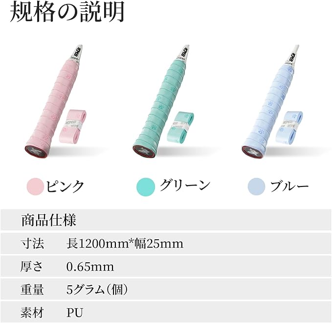【多彩な使用場面】テニスラケット、バドミントンラケット以外にも、釣り竿、ゴルフクラブ、自転車のハンドル、オートバイのグリップ、ドラムスティック、フェンシング道具、トレーニング機器など、様々なアイテムの滑り止めグリップとしてご利用いただけます。携帯に便利で多用途に活躍します。