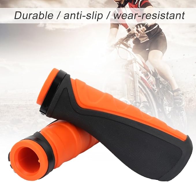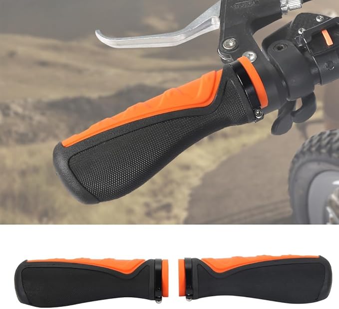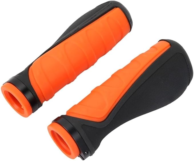 1組 滑り止めロックオン人間工学ハンドルバーグリップ - オレンジ&ブラックラバー マウンテンバイク、BMX、アーバンバイク、スクーター用