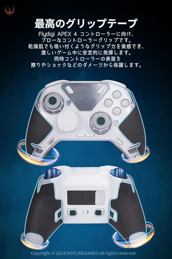 Hotline Games コントローラーグリップ FLYDIGI APEX 4 用 滑り止め グリップ テープ アンチスリップ グリップシール アンチスリップテープ 【 グリップ力強化/吸汗力強 / 超薄0.6mm / 安全無臭 】【 日本正規代理店保証品 】 (グリップ部分のみ)