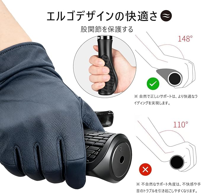 自転車 グリップ 自転車用アクセサリー【内径φ22.2mm】人間工学に基づく手のひらレストのカーブデザイン 疲労軽減 耐久性 滑り止め 快適 衝撃吸収 握りやすい 取付簡単 自転車・MTB・クロスバイクに対応しています