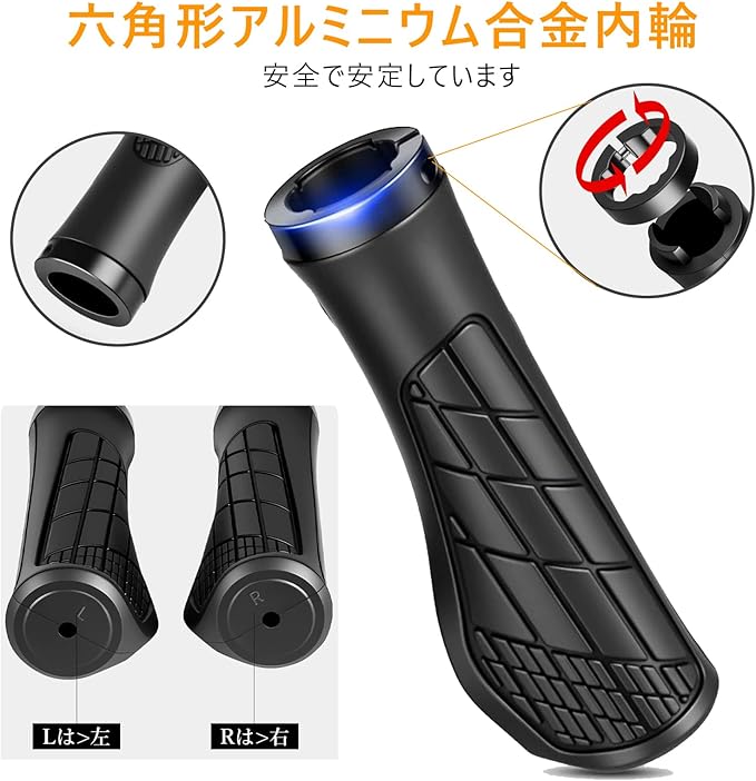 【高品質材質】:YOOTASIO 自転車 ハンドルグリップは高品質の厚手のゴムで作られており、内側のリングは六角形のアルミニウム合金ロックリングで、安全で安定しています。耐久性、滑り止め、快適、衝撃吸収 。変形に強く、握りやすい形状が、長時間の騎乗で手の疲れも軽減されます、サイクリング体験を向上させます。