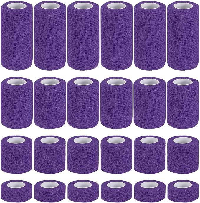 カラー:ダークパープル;素材:不織布;長さ:177"(450 cm);4つの幅:1"(2.5 cm)、2"(5 cm)、3"(7.5 cm)、4"(10 cm);梱包リスト:セルフアドヘーシブバンデージラップ24個(1個ごとの仕様)