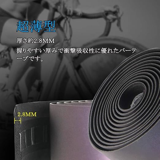 【簡単に取り付ける】中間で両面テープをハンドルの周方向に巻いておくと巻き戻りもなく上手に巻けます。エンドプラグと仕上げテープも含まれています。伸縮性があり接着剤でしっかり固定され、付属の補助テープとバーエンドキャップを使用し、簡単にハンドルバーに巻けます。