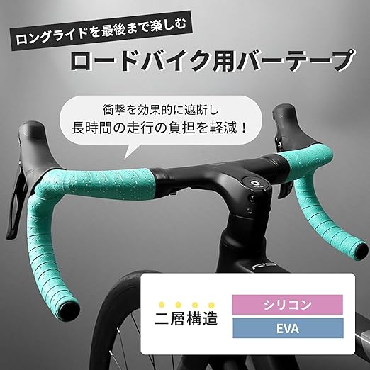 ロングライドを最後まで楽しむための手に馴染むバーテープ!シリコンとEVAの二層構造が地面からの衝撃を効果的に遮断し、長時間の走行でも手のひらの負担を軽減。手の痺れを気にせず、思い切りペダルを踏み込めます。