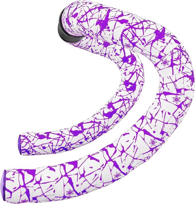 Supacaz (スパカズ) サイクリング バーテープ - Super Sticky Kush - Splat - Limited - White w/Neon Purple + Purple Star Plugz