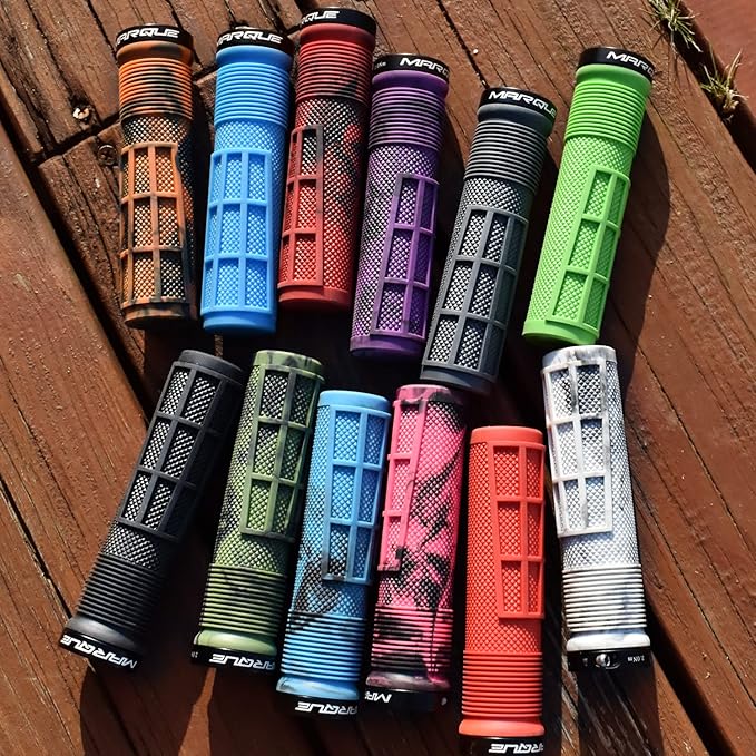 MARQUE Race マウンテンバイク ハンドルバーグリップ – シングルロックオンリングカラー MTBおよびBMX 自転車ハンドルバー 滑り止めグリップ、ギザギザ模様、ハーフワッフルパターン