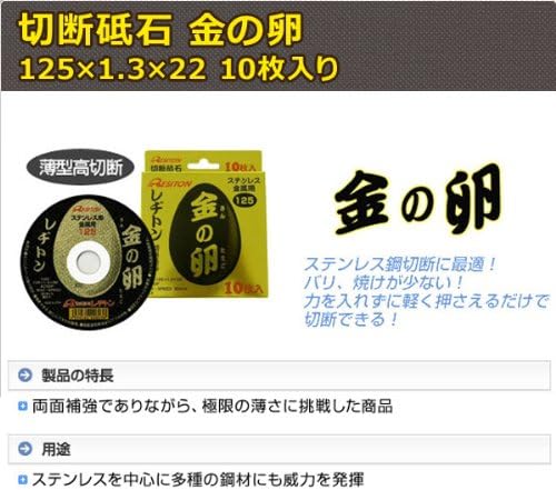 レヂトン 切断砥石「金の卵」(10枚入) 125 1.3 22 【純正パッケージ商品 JAN 4934560008205】