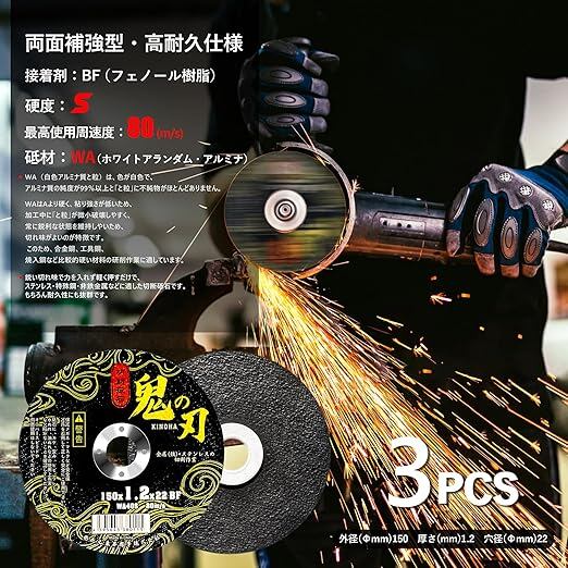 (鬼の刃)切断砥石(150mmφ・3枚入)金属用 鉄工用 替刃 替え刃 ディスクグラインダー対応 アクセサリー150 1.2 22㎜