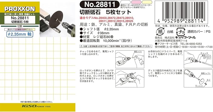 プロクソン (PROXXON) 切断砥石5枚 シャフト付 【砥石径38mm 厚み0.7mm 軸径2.35mm】 No.28811