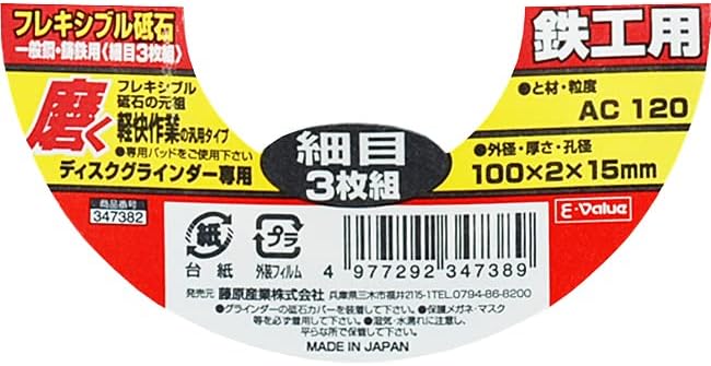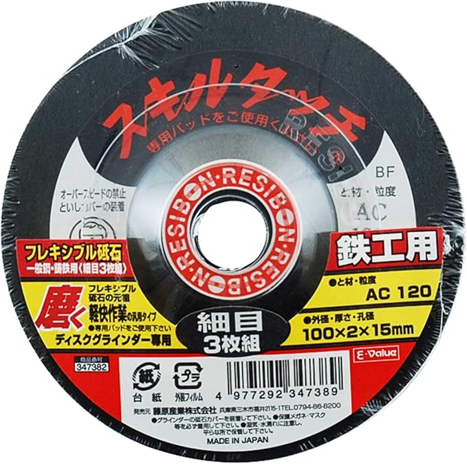イーバリュー(E-Value) フレキシブル砥石 スキルタッチ 3枚組 一般鋼用 細目 AC120 100 2 15mm