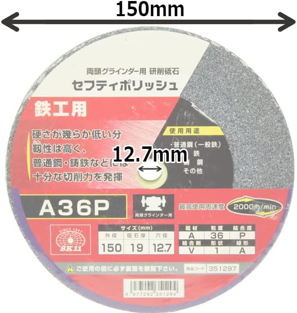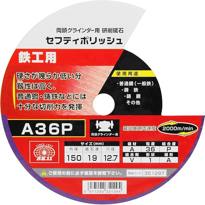 SK11 両頭グラインダー用 研磨砥石 セフティポリッシュ B 鉄工用 150 19mm A36P