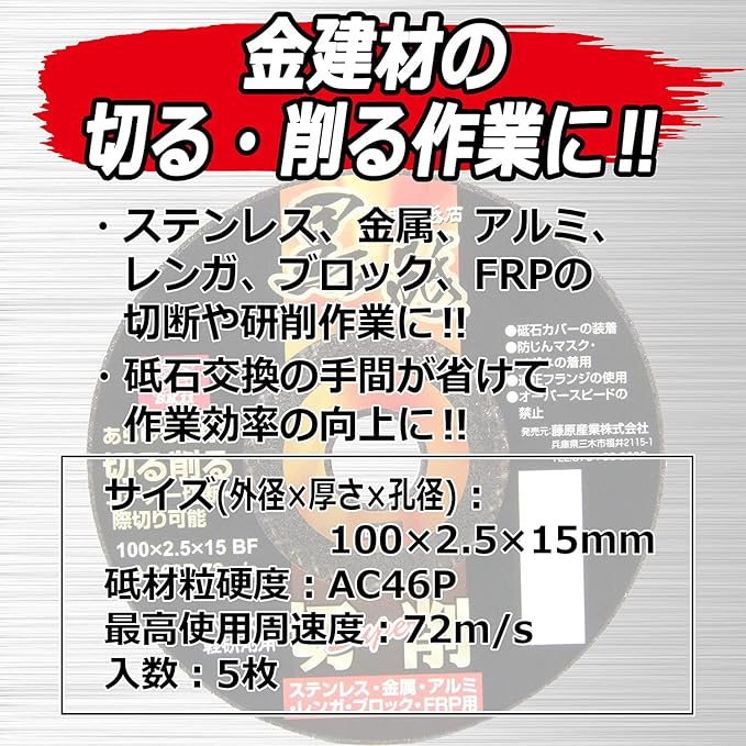 用途:ステンレス・金属・アルミ・レンガ・ブロック・FRPの切断・研削作業