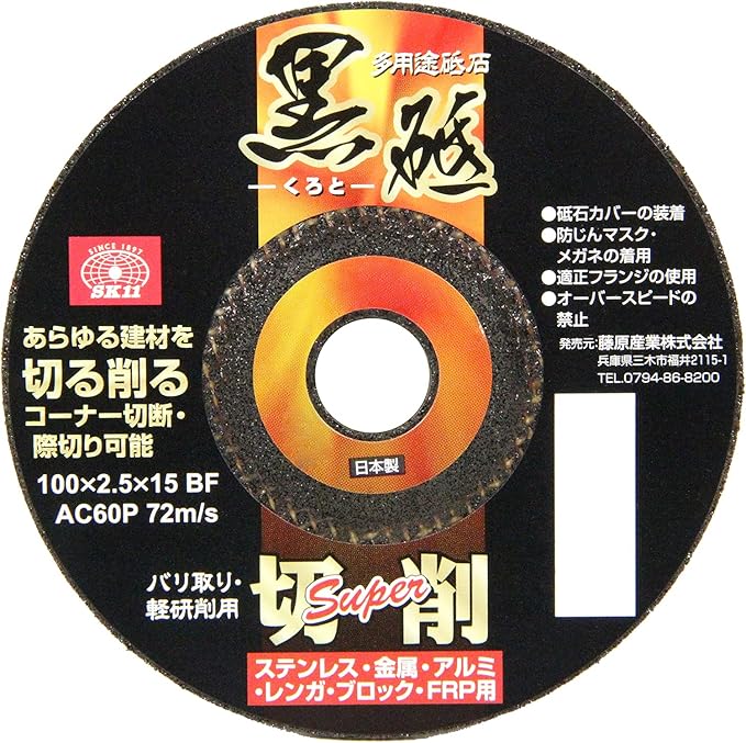 SK11(エスケー11) ディスクグラインダー用 研磨砥石 黒砥 切削用 SUPER 5枚入 100 2.5 15mm