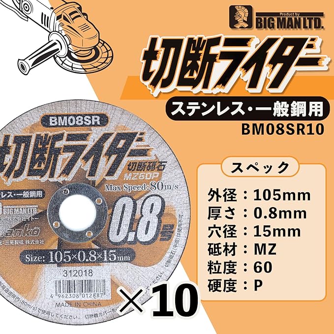 ビッグマン(Bigman) 切断ライダー 厚さ0.8cm 箱セット 10枚BM08SR10