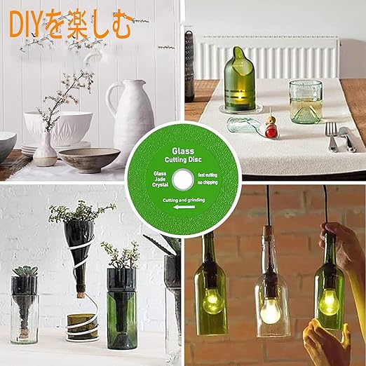 被削材:このカットディスクは、ガラス、ワインボトル、ヒスイ、セラミックなどの切断や研削に使えます、滑らかな切断、面取り、研磨に