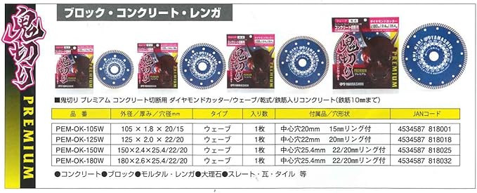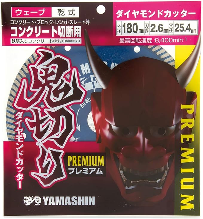 山真製鋸(Y'sGOD JAPAN) ダイヤモンドカッター コンクリート切断用 鬼切りプレミアム PEM-OK-180W ウェーブタイプ 180mm
