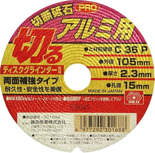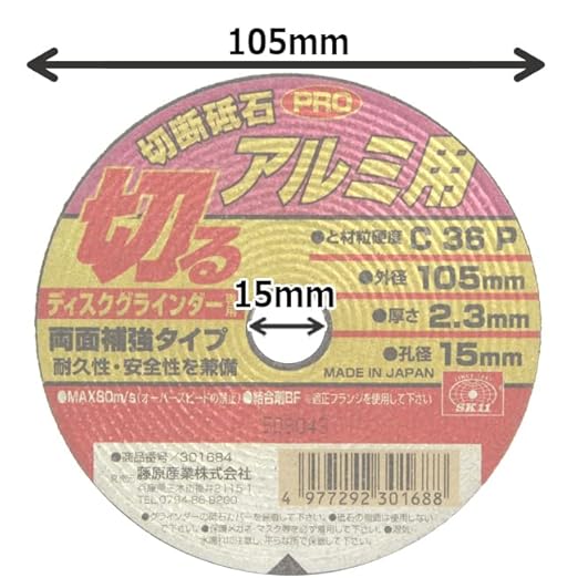 SK11(エスケー11) ディスクグラインダー用 切断砥石 PRO アルミ用 C36P 105 2.3 15mm ( 2)