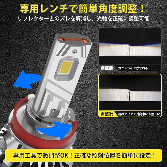 【取付簡単・角度調整で理想の照射】取り付けが難しそう…そんな心配は不要です。Perrace h11 led ヘッドライトはポン付け可能な設計で、誰でも簡単に交換できます。極性ありタイプのため、+−の向きを確認して接続してください。角度調整機能により、車種や取付位置に合わせて最適な配光を設定可能。夜間の山道や雨の日のドライブでも死角が少なく、視認性が格段にアップ。交換後、「こんなに明るかったのか!」と驚く方が続出です。