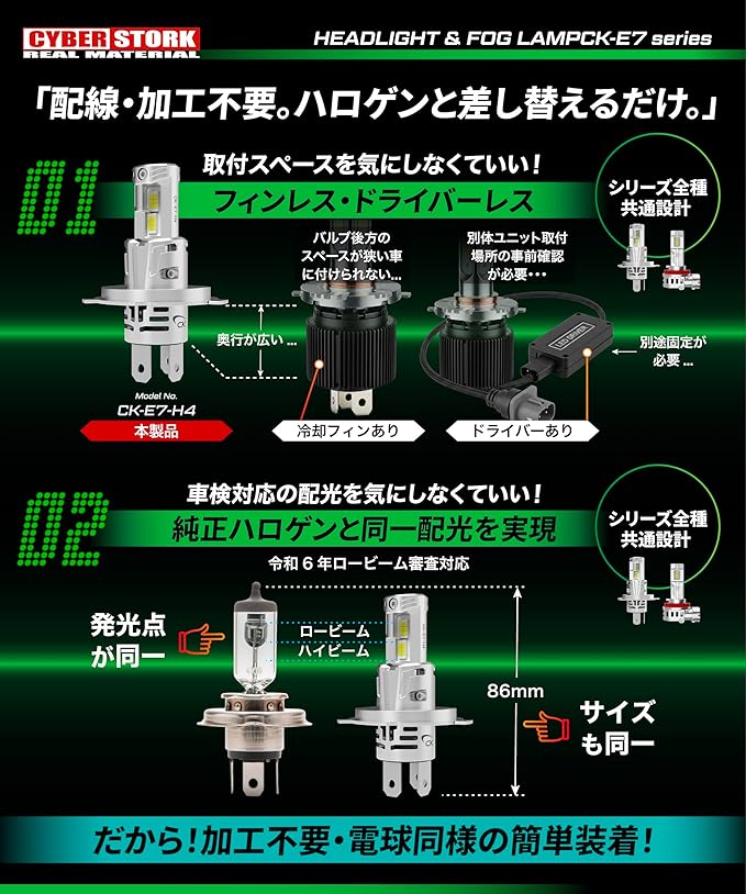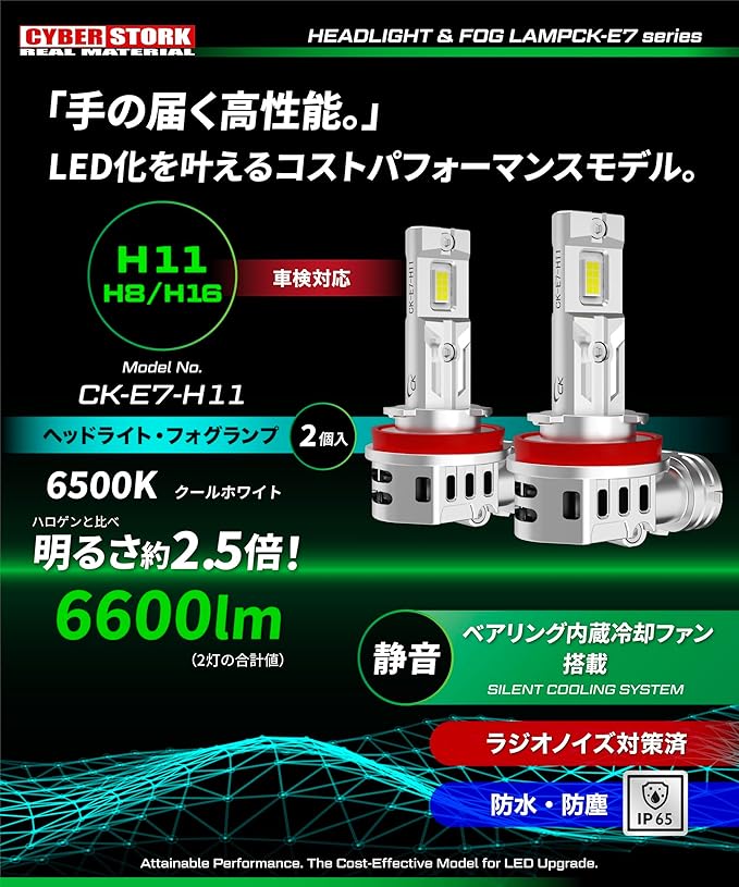 CYBERSTORK サイバーストーク 日本メーカー H8 H11 H16 LEDヘッド&フォグライト 220.000cd ホワイト 6.600ルーメン 配線レス 6500K 取付簡単 純白 12V 2本1セット Eシリーズ ck-e7-h11
