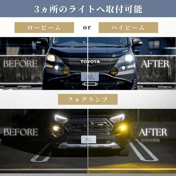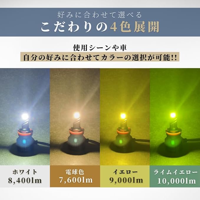 【圧倒的な光量維持と実用性】 エフシーエルのレジェンダリーシリーズは、点灯直後から安定時まで明るさがほとんど低下しない設計を実現。一般的なLEDが時間経過で減光する中、本製品は高い水準で光量を維持し、夜間の視認性を確保します。純正ハロゲン比10倍以上の明るさで、HIDを超える視界を提供。ホワイト、イエロー、ライムイエロー、電球色から選べる豊富なカラーバリエーションで、カスタムと実用性を両立した車検対応モデルです。