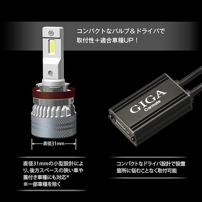 カーメイト(CARMATE) GIGA 車用 LEDヘッドライト S7シリーズ 5000K 車検対応 自然な白色光 H8 H9 H11 H16 BW557