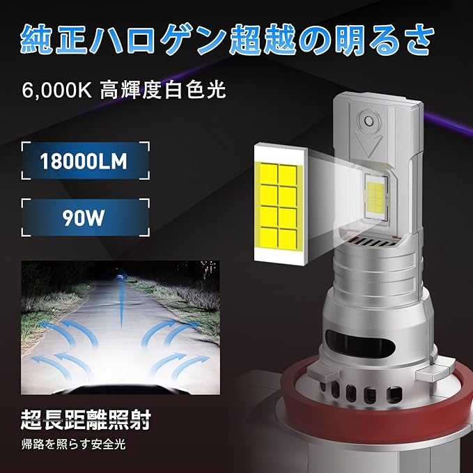 【パッケージ内容】H11 LEDヘッドライト 2個。ヘッドライトバルブ、フォグランプ、デイタイムランニングライト(DRL)用。内蔵のスマートテクノロジーにより、ほぼ98%の車両でちらつきやエラーメッセージなしで動作します。製品に関するご質問がございましたら、お気軽にお問い合わせください。