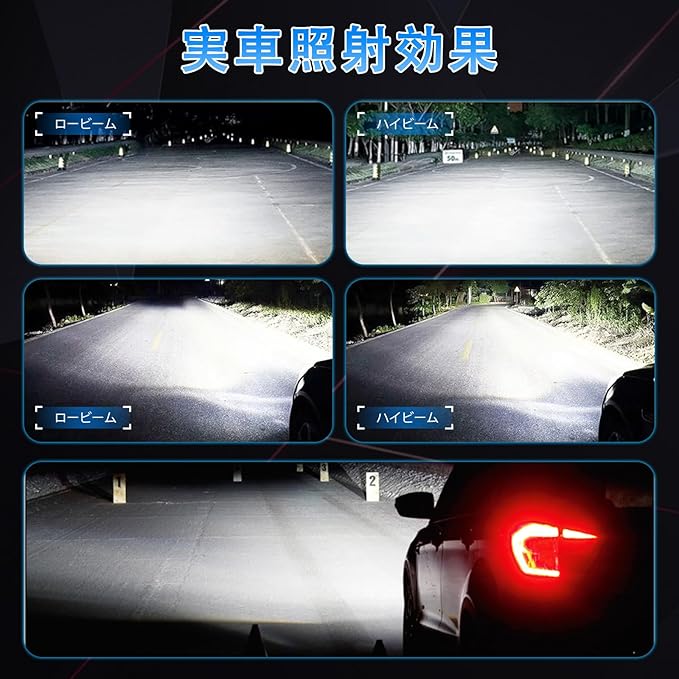 【高輝度H11 LEDバルブ】H11 LEDヘッドライトバルブは、両面16CSP LEDチップを採用し、各ペアの出力パワーは最大16000LMに達します。従来のCOBに比べて光束角が広く、色再現精度も高い6000Kの美しい集中した白色光束を提供し、より広角で長い視認角度を実現します。明るさはハロゲンランプの400%以上です。当社のH8電球は優れた電気性能を備えており、凹凸のある道路でも安定した性能を発揮し、他のパッケージチップよりも衝撃に強くなっています。