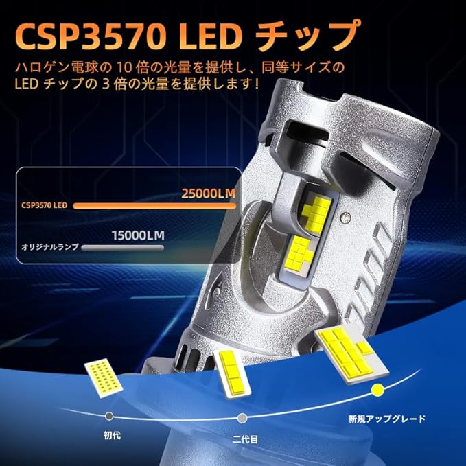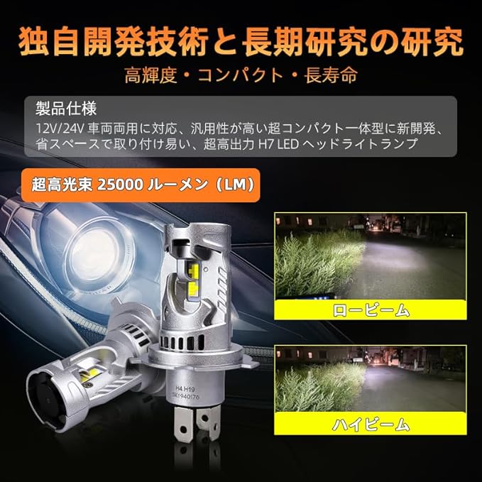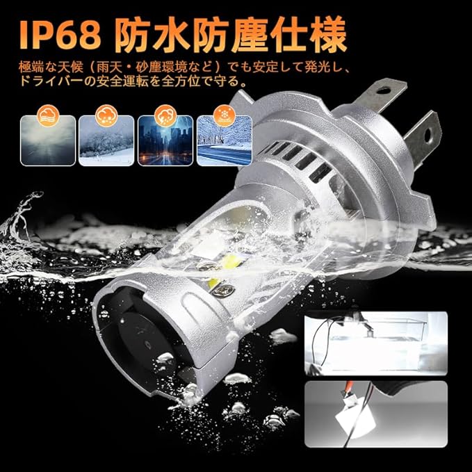 【H4 LED車検対応 高輝度 ヘッドライト】 本品はh4 LEDバルブ専用設計。高品質CSP LEDチップを搭載し、従来のハロゲンランプ比で約18倍の明るさを実現。6500Kの純白光束が夜間の視界をクリアに照らし、運転の安全性を飛躍的に向上させます。