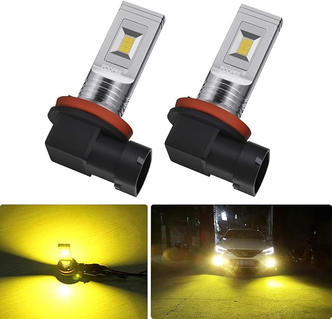 LEDフォグランプ H11 H16(国産車) H8 H9 黄色 イエロー-ポーペ(POOPEE) 60W 1200LM 3000K 12V/24V兼用 無極性 CSPチップ搭載 両面発光 2本セット